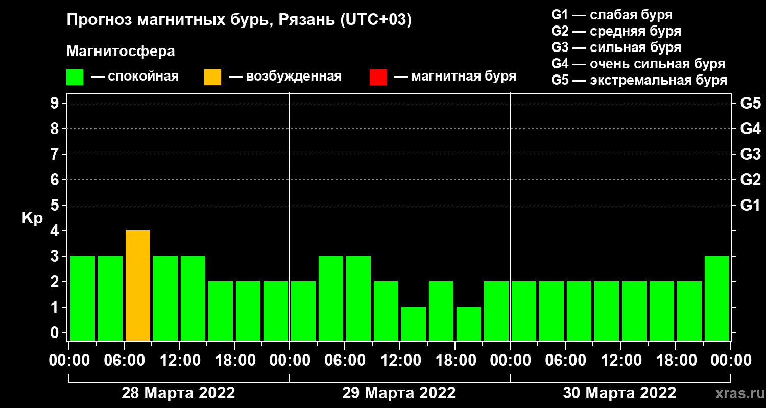 Прогноз магнитных бурь Рязани — 28 марта 2022 года