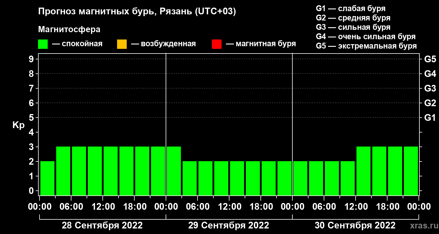Прогноз магнитных бурь Рязани на 28 сентября 2022 года
