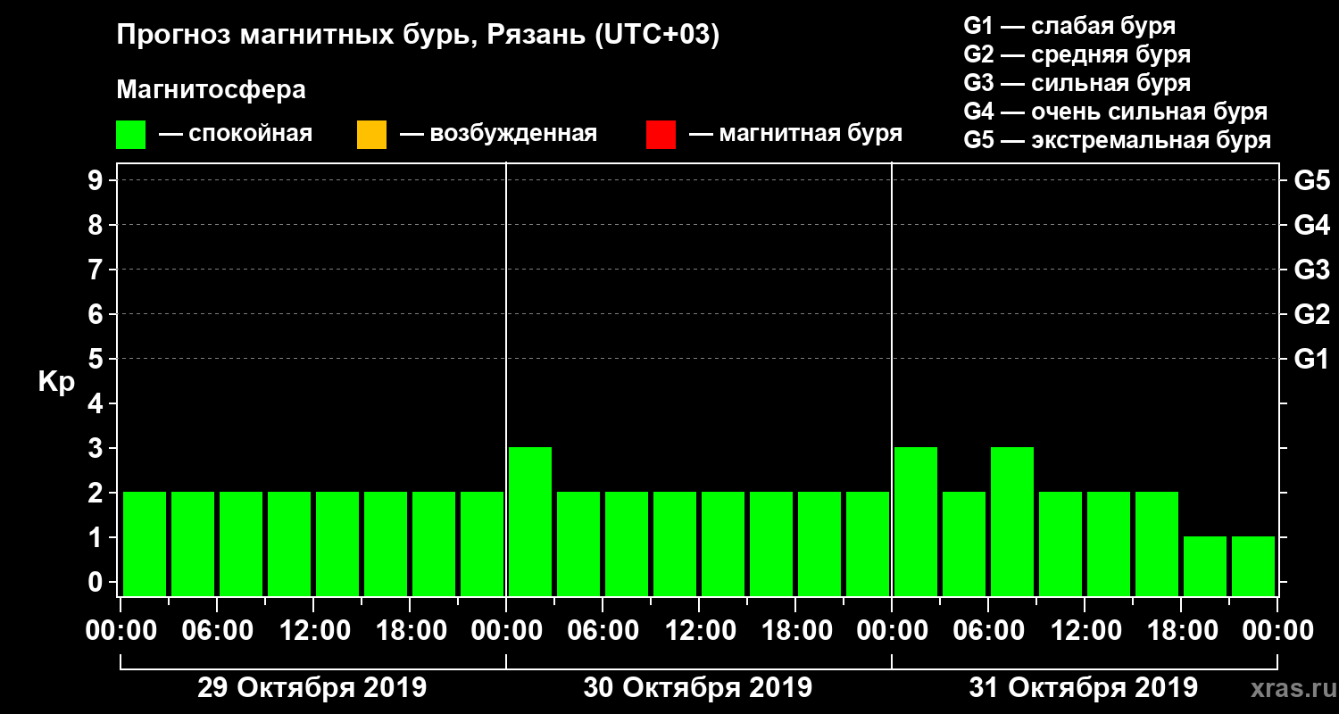 Прогноз магнитных бурь Рязани — 29 октября 2019 года