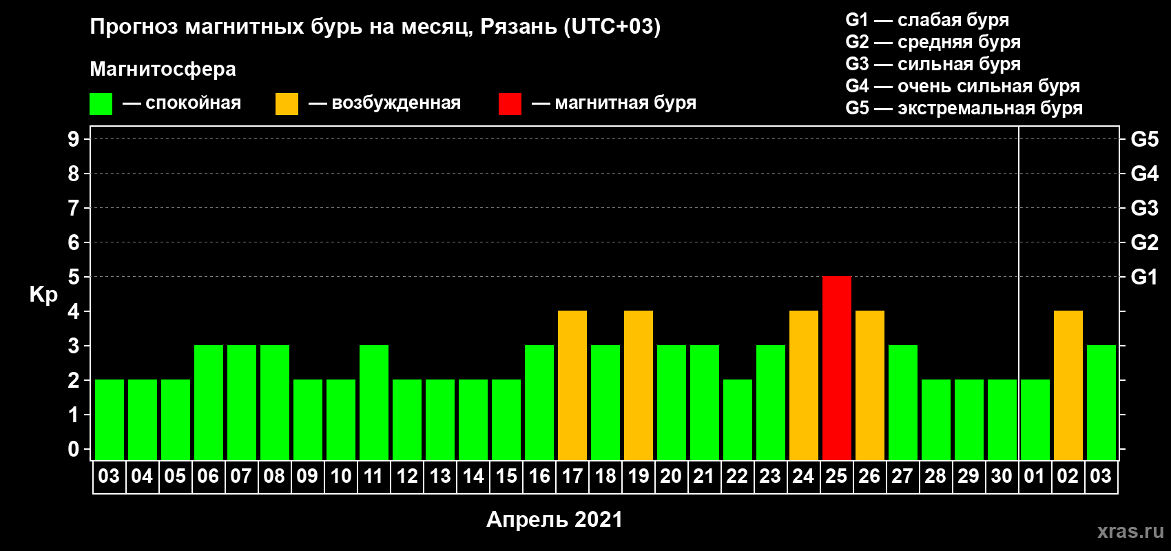 Прогноз магнитных бурь Рязани — 3 апреля 2021 года