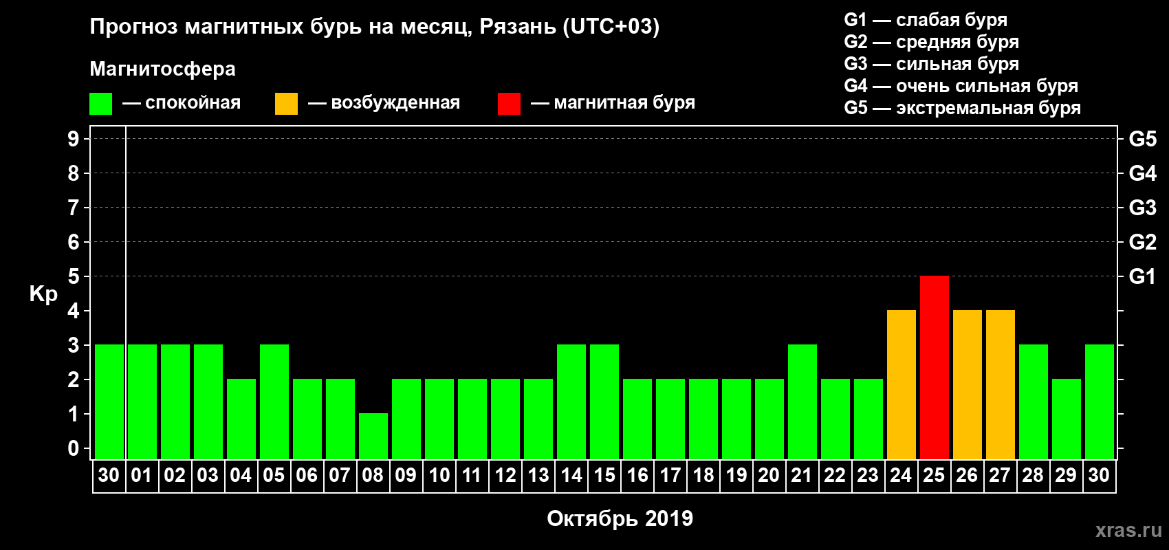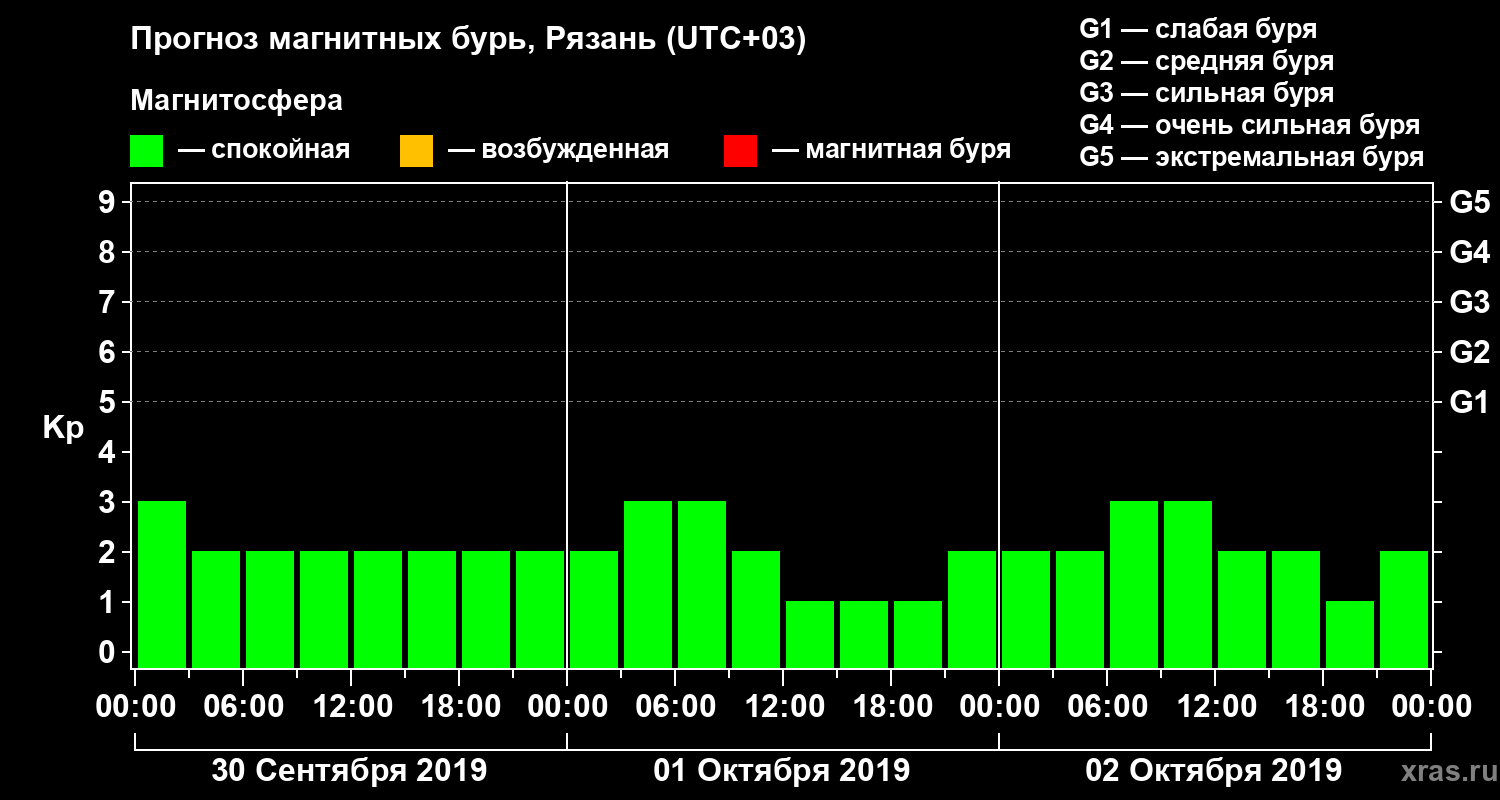 Прогноз магнитных бурь Рязани на 30 сентября 2019 года