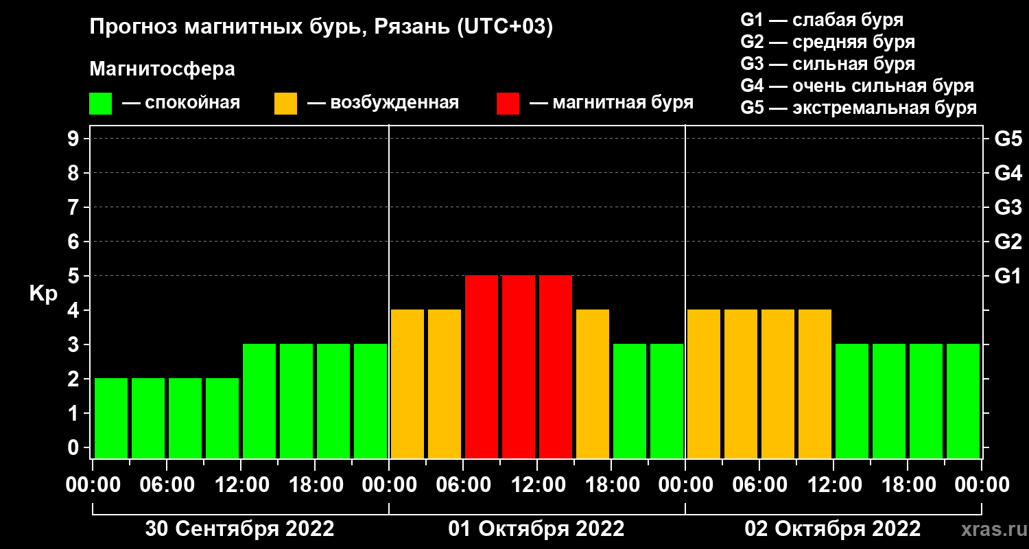Прогноз магнитных бурь Рязани на 30 сентября 2022 года