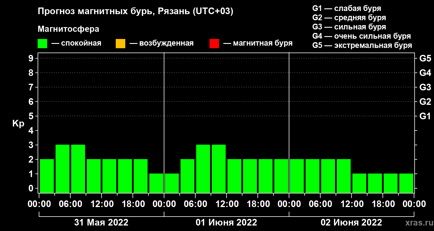 Прогноз магнитных бурь Рязани — 31 мая 2022 года