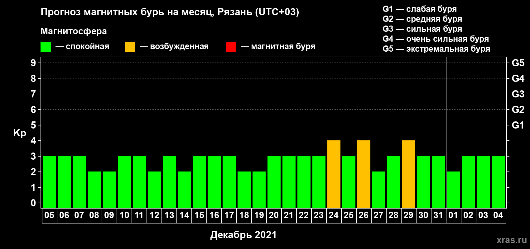 Прогноз магнитных бурь Рязани — 5 декабря 2021 года
