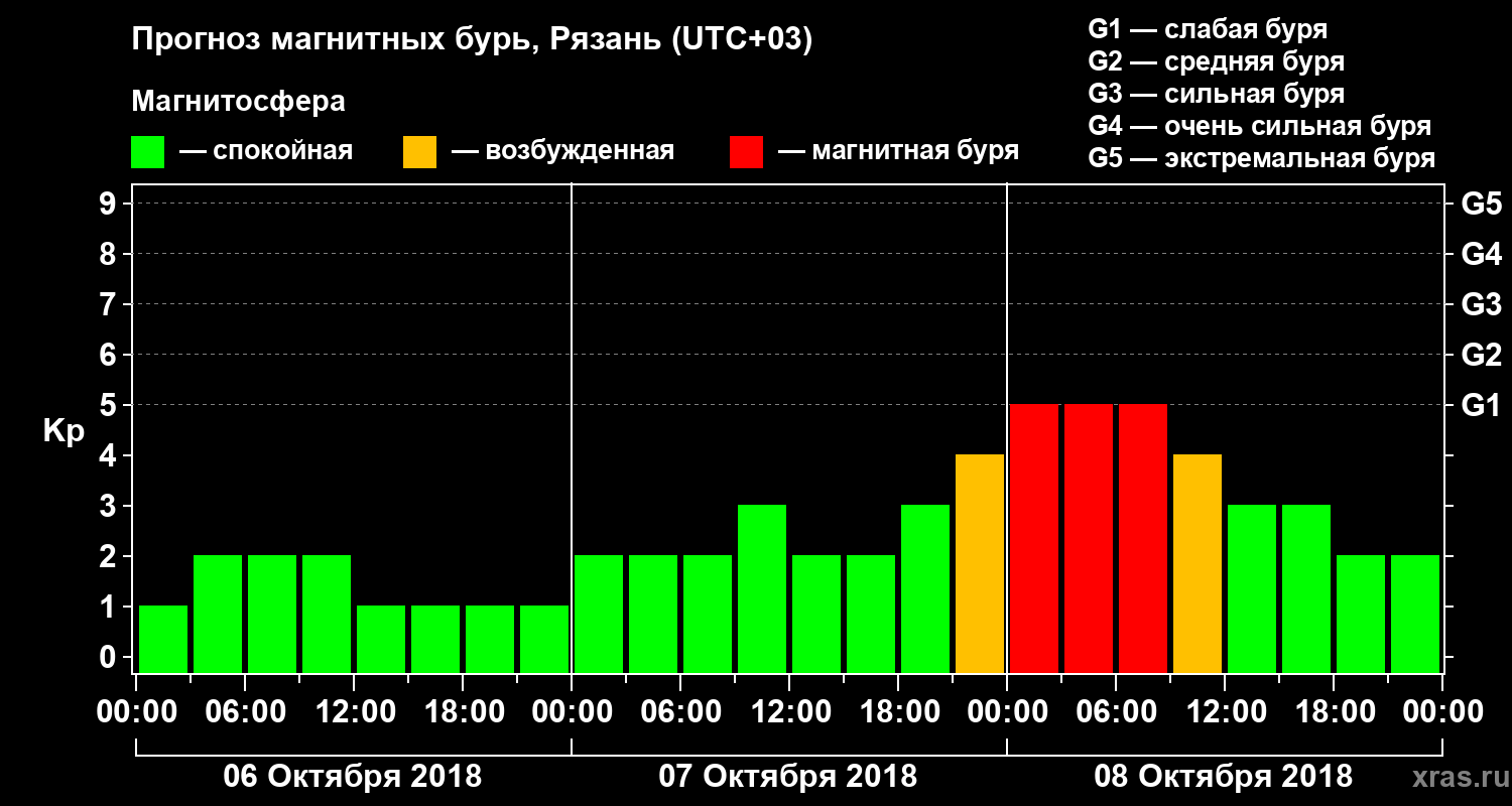 Прогноз магнитных бурь Рязани — 6 октября 2018 года