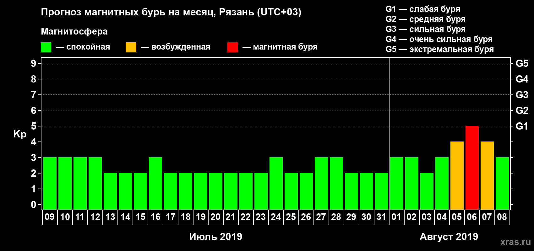 Прогноз магнитных бурь Рязани — 9 июля 2019 года