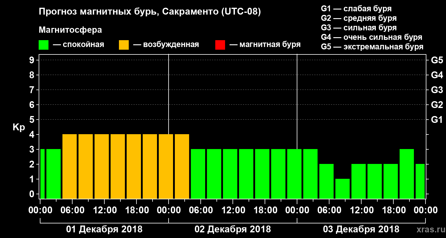 Прогноз магнитных бурь Сакраменто — 1 декабря 2018 года