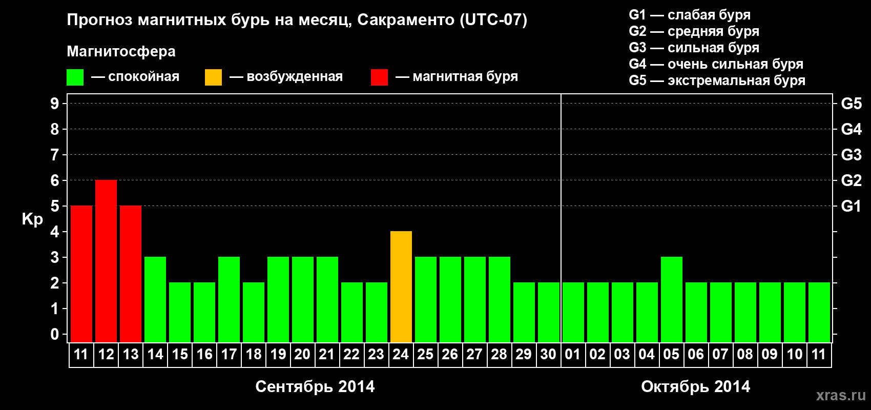 Прогноз магнитных бурь Сакраменто — 11 сентября 2014 года