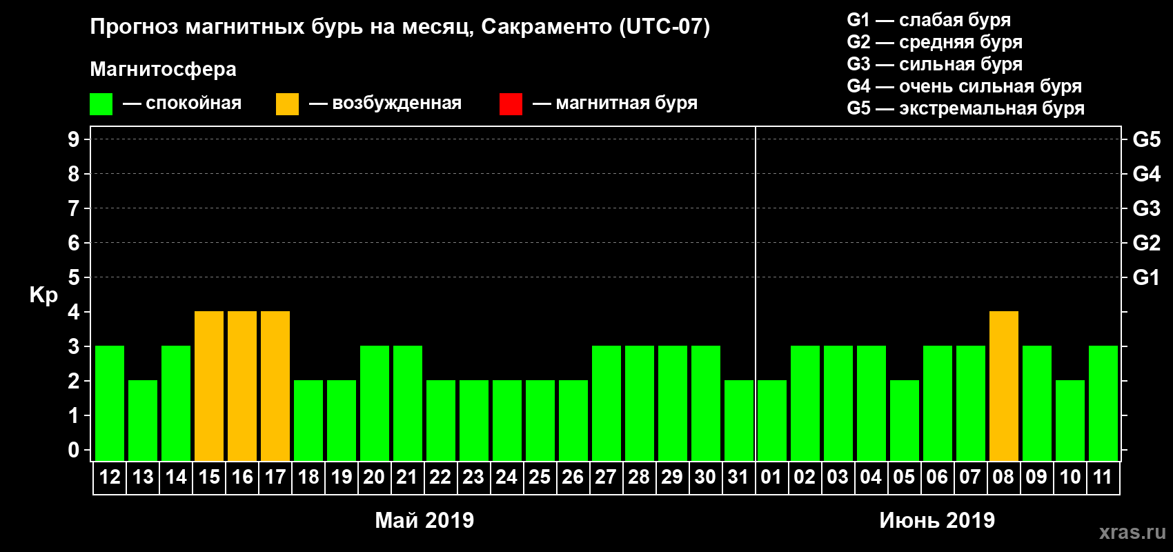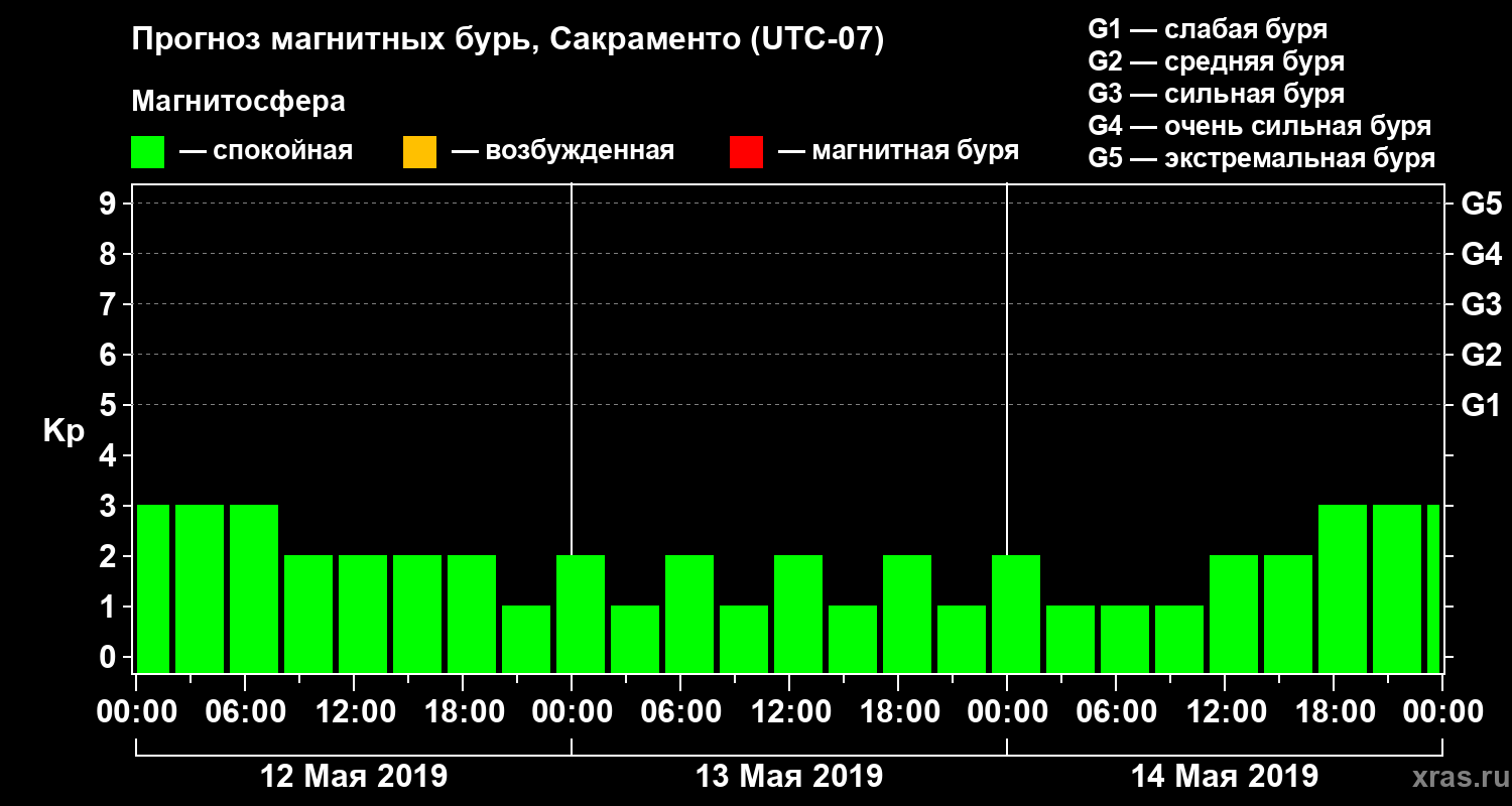 Прогноз магнитных бурь Сакраменто — 12 мая 2019 года
