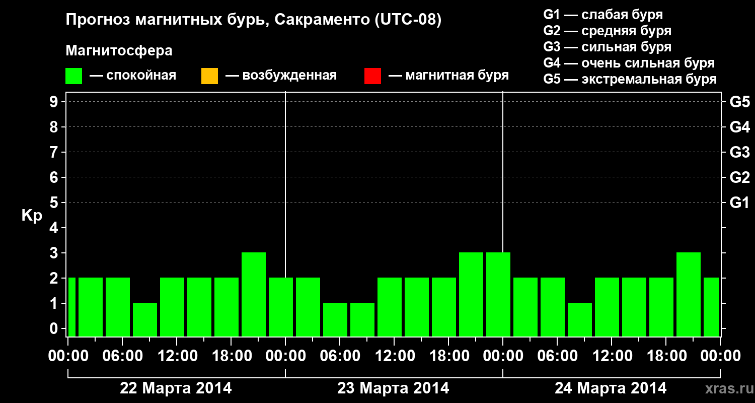 Прогноз магнитных бурь Сакраменто — 22 марта 2014 года