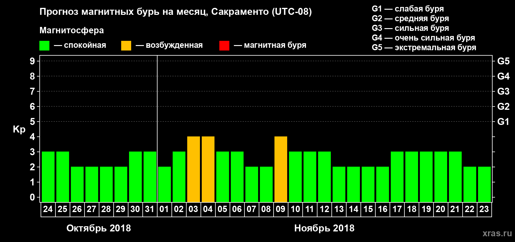Прогноз магнитных бурь Сакраменто — 24 октября 2018 года