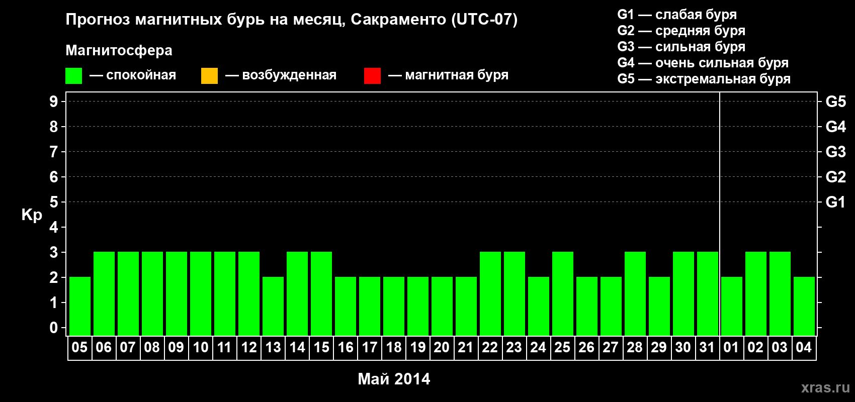 Прогноз магнитных бурь Сакраменто — 5 мая 2014 года