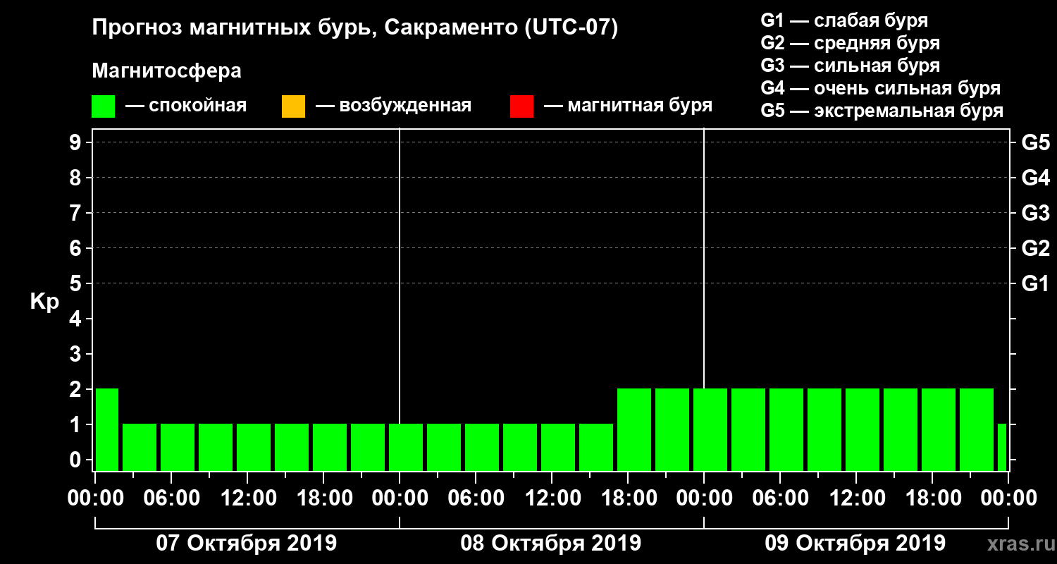 Прогноз магнитных бурь Сакраменто — 7 октября 2019 года
