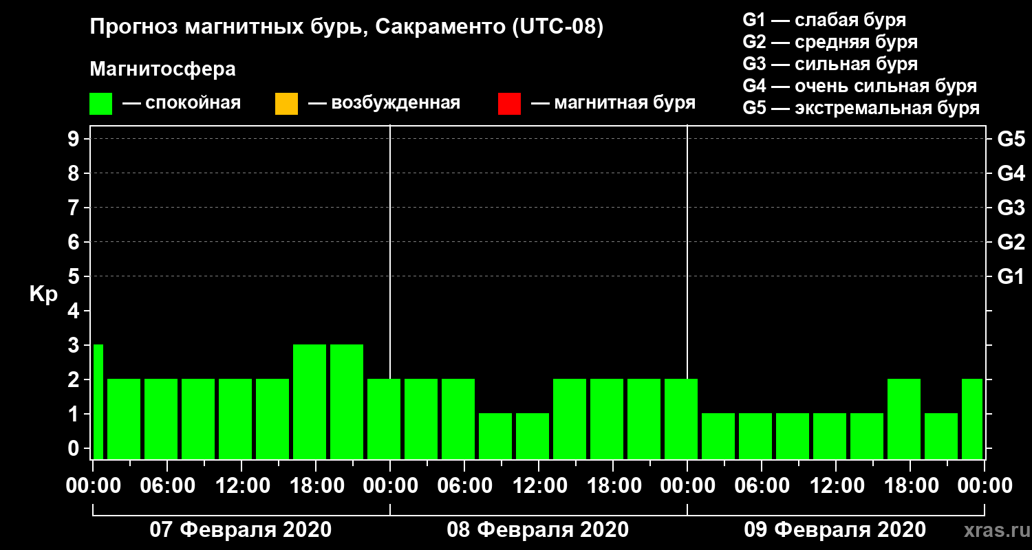 Прогноз магнитных бурь Сакраменто — 7 февраля 2020 года