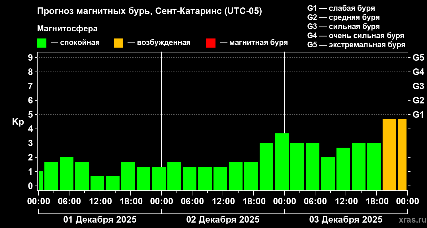 Прогноз магнитных бурь в Сент-Катаринсе на 1 декабря 2025 года