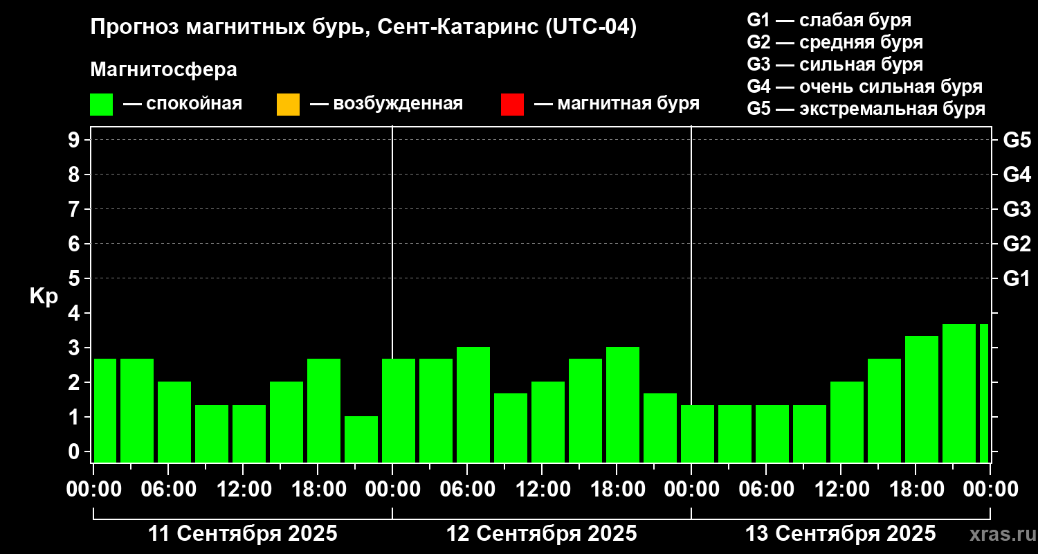 Прогноз магнитных бурь в Сент-Катаринсе на 11 сентября 2025 года