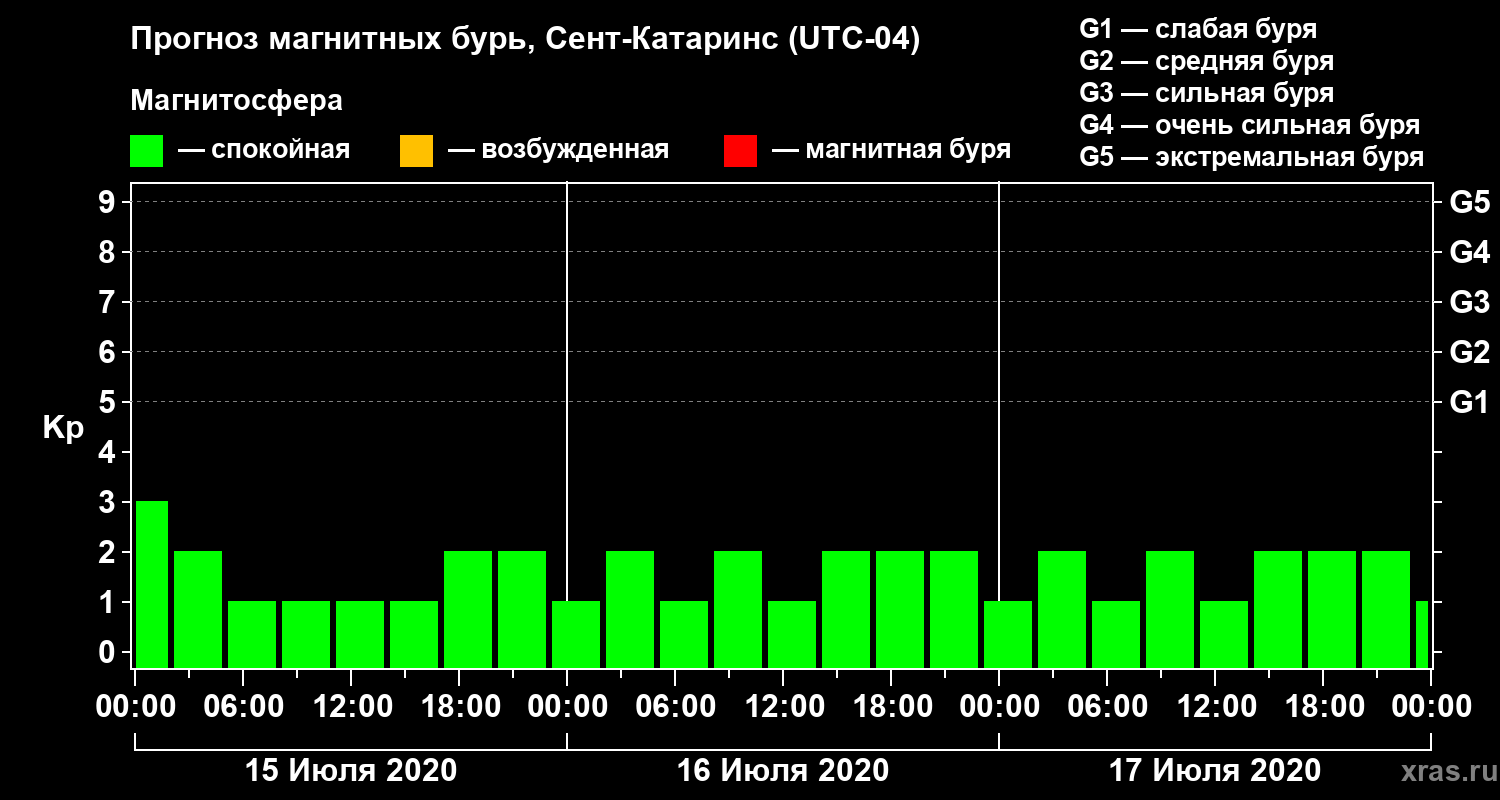Прогноз магнитных бурь в Сент-Катаринсе — 15 июля 2020 года