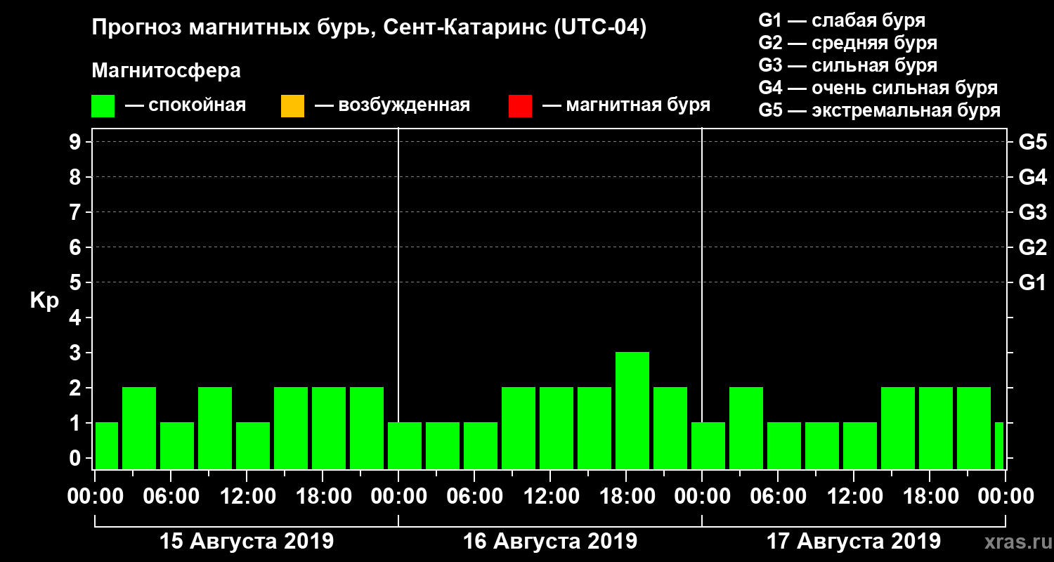 Прогноз магнитных бурь в Сент-Катаринсе — 15 августа 2019 года