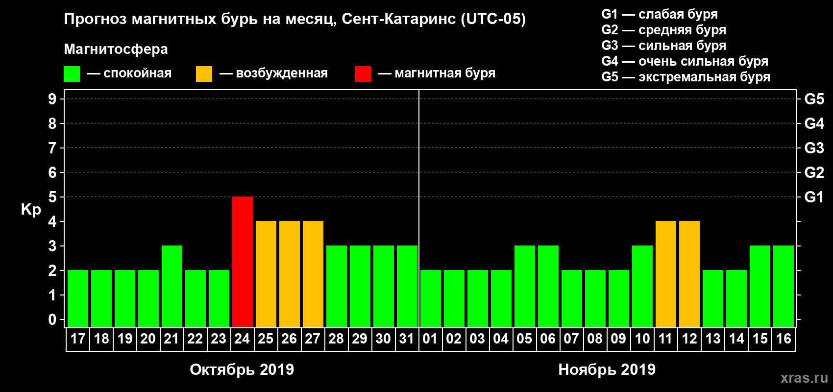Прогноз магнитных бурь в Сент-Катаринсе — 17 октября 2019 года