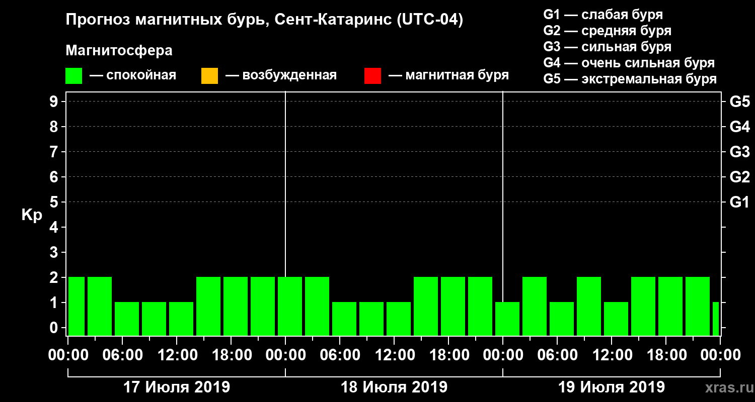 Прогноз магнитных бурь в Сент-Катаринсе — 17 июля 2019 года