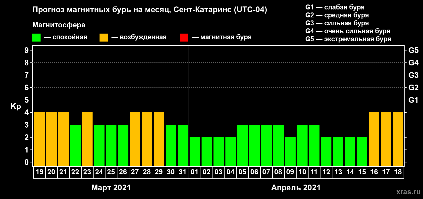 Прогноз магнитных бурь в Сент-Катаринсе — 19 марта 2021 года