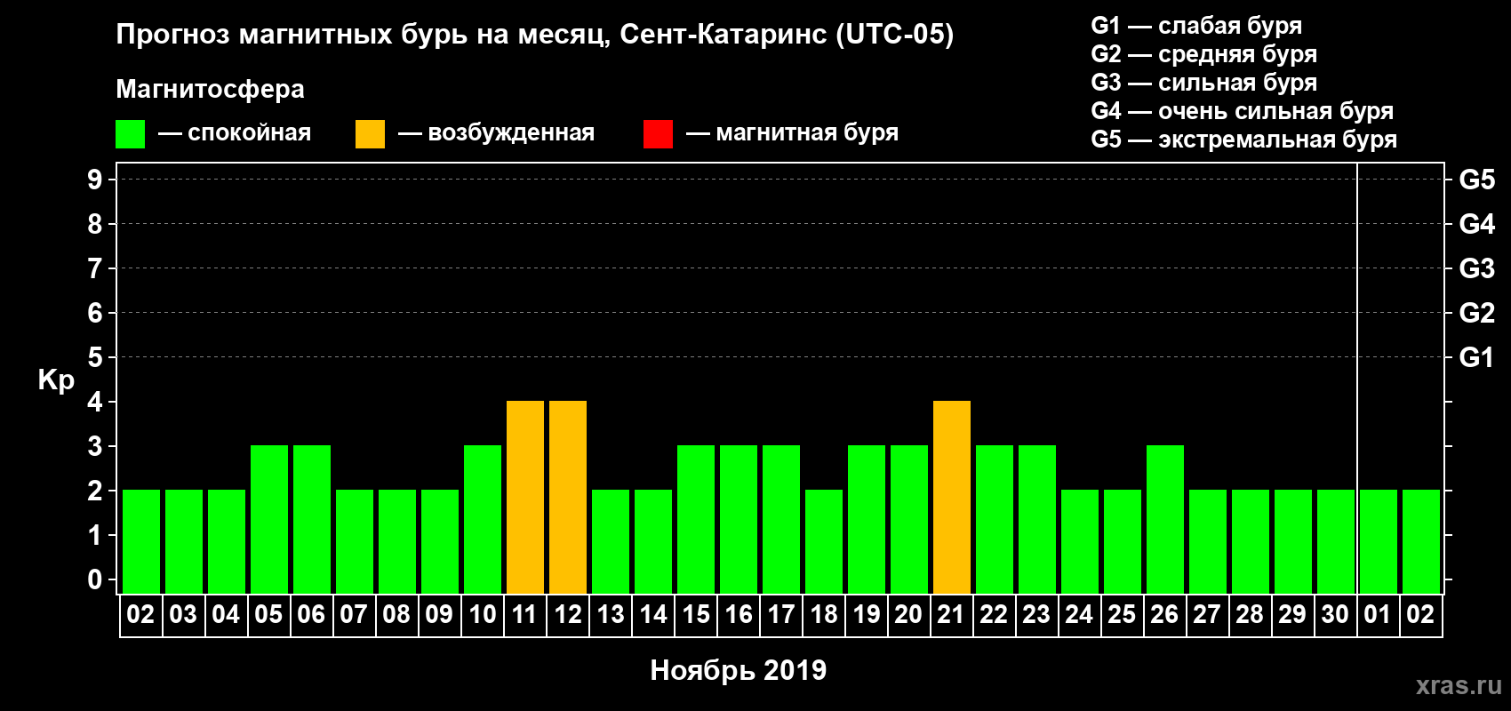 Прогноз магнитных бурь в Сент-Катаринсе — 2 ноября 2019 года