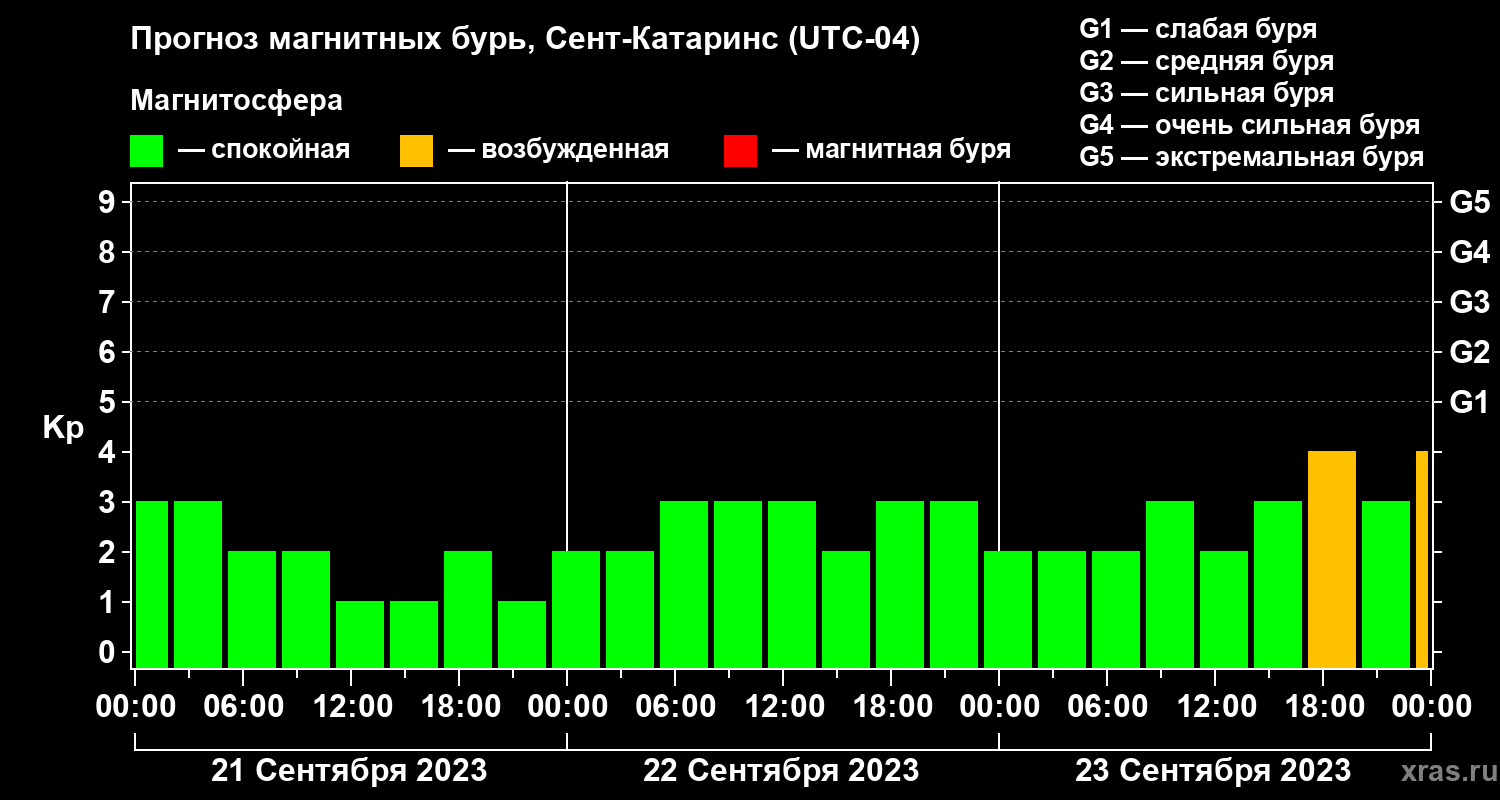 Прогноз магнитных бурь в Сент-Катаринсе — 21 сентября 2023 года