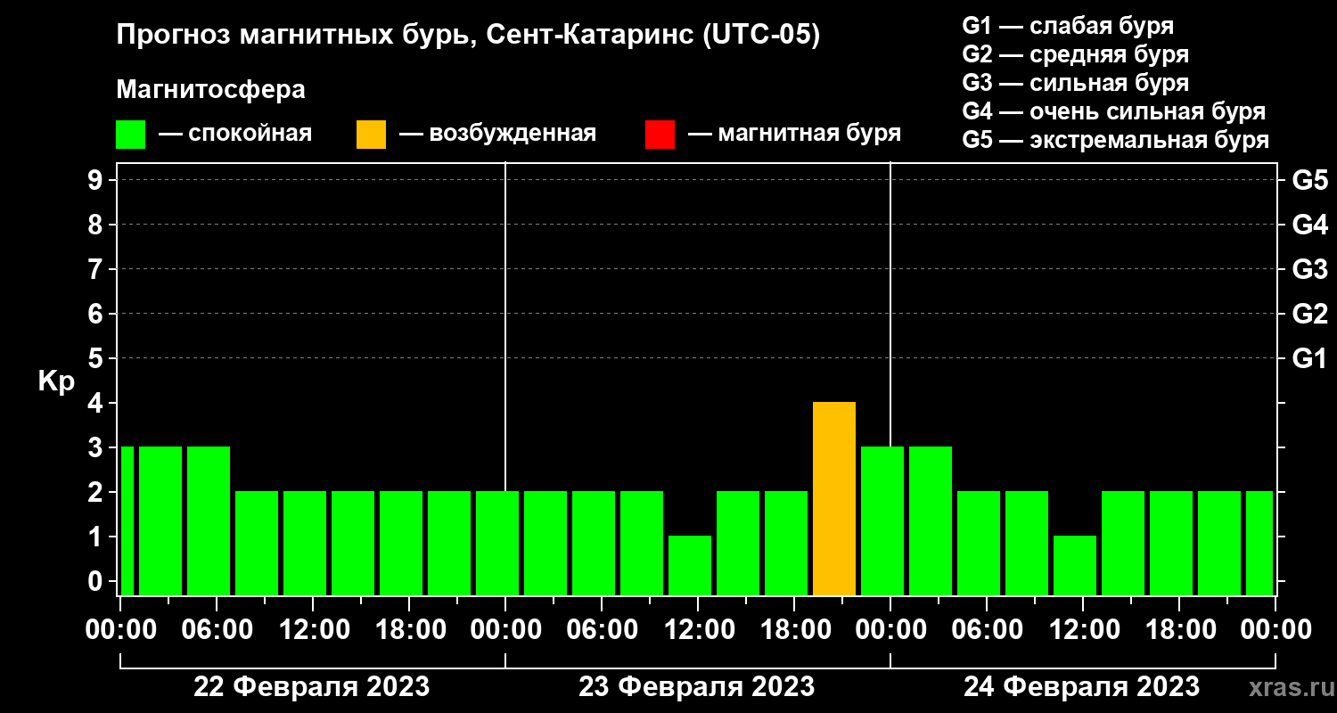 Прогноз магнитных бурь в Сент-Катаринсе на 22 февраля 2023 года