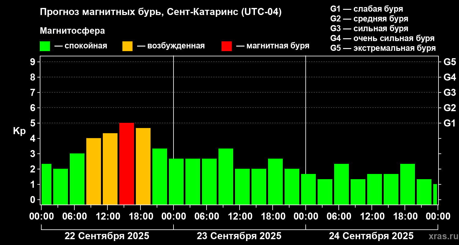 Прогноз магнитных бурь в Сент-Катаринсе на 22 сентября 2025 года