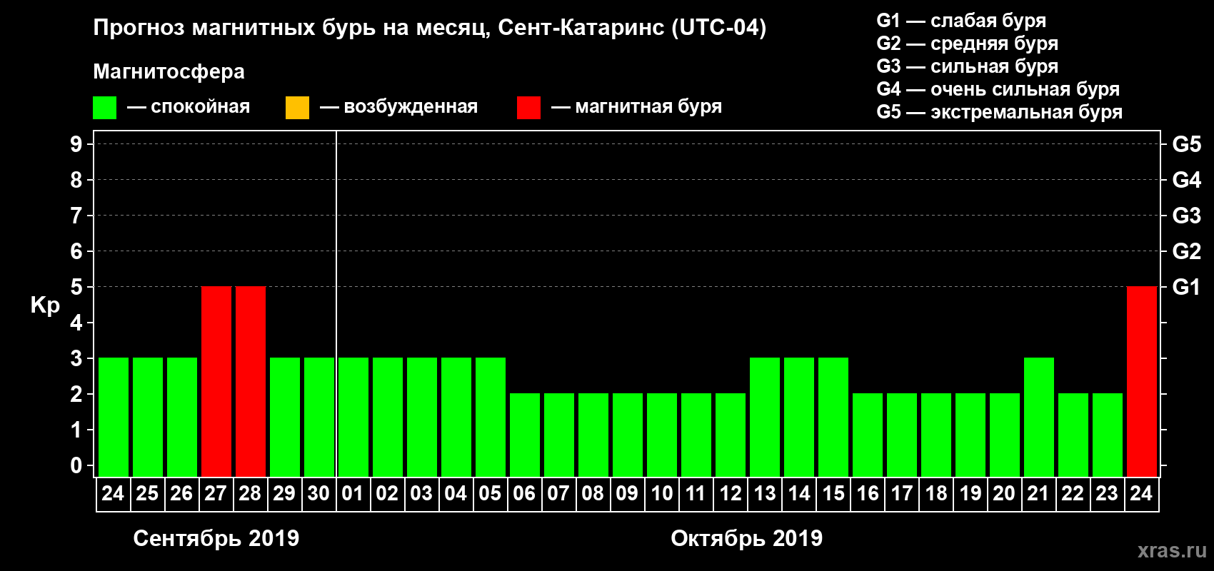 Прогноз магнитных бурь в Сент-Катаринсе — 24 сентября 2019 года
