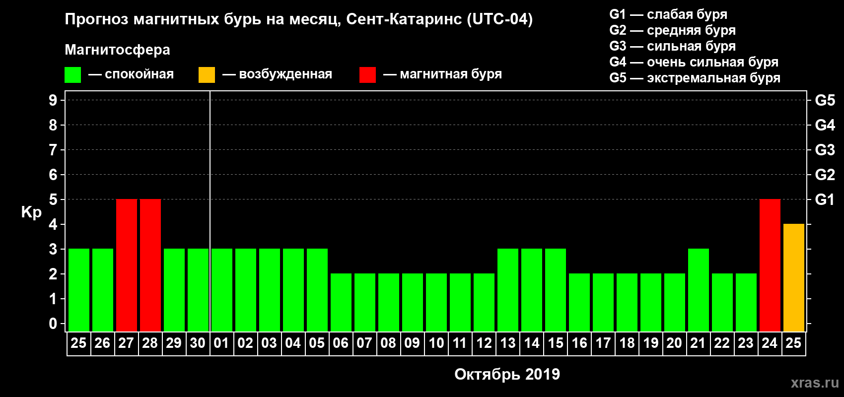 Прогноз магнитных бурь в Сент-Катаринсе — 25 сентября 2019 года