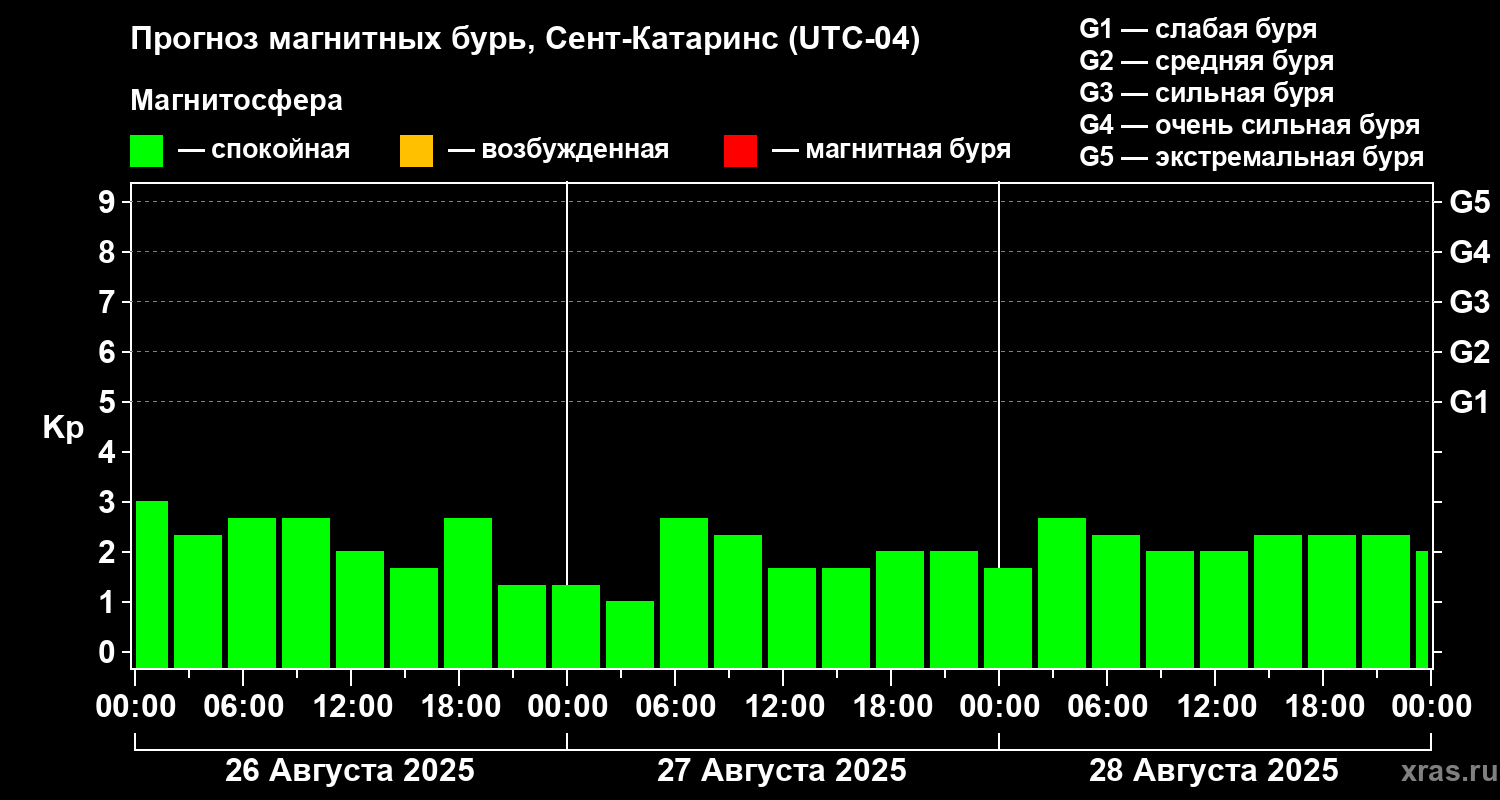 Прогноз магнитных бурь в Сент-Катаринсе на 26 августа 2025 года