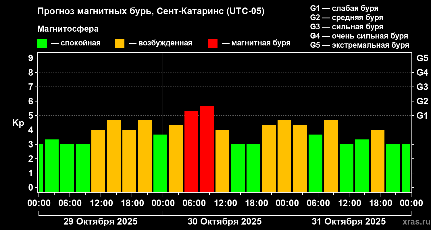 Прогноз магнитных бурь в Сент-Катаринсе — 29 октября 2025 года