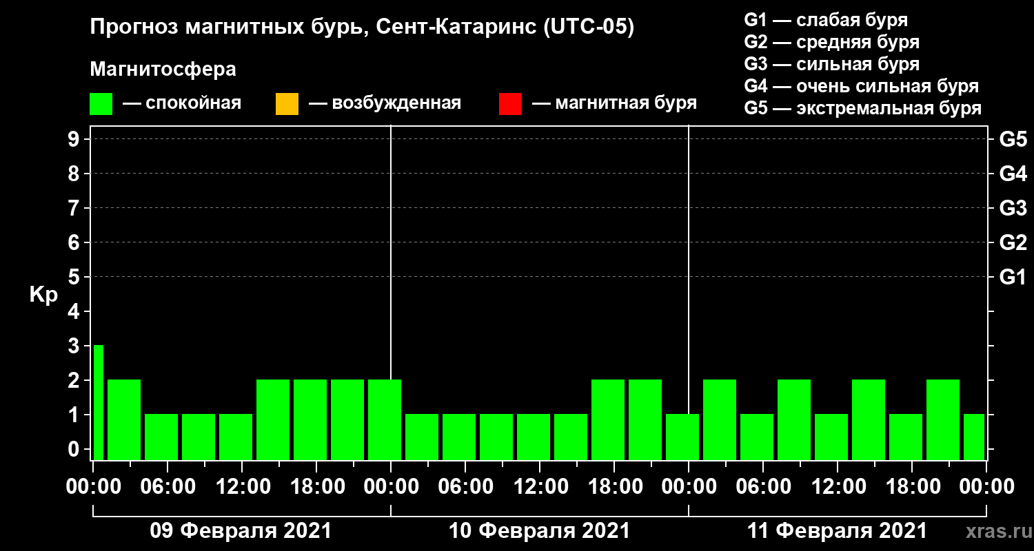 Прогноз магнитных бурь в Сент-Катаринсе — 9 февраля 2021 года