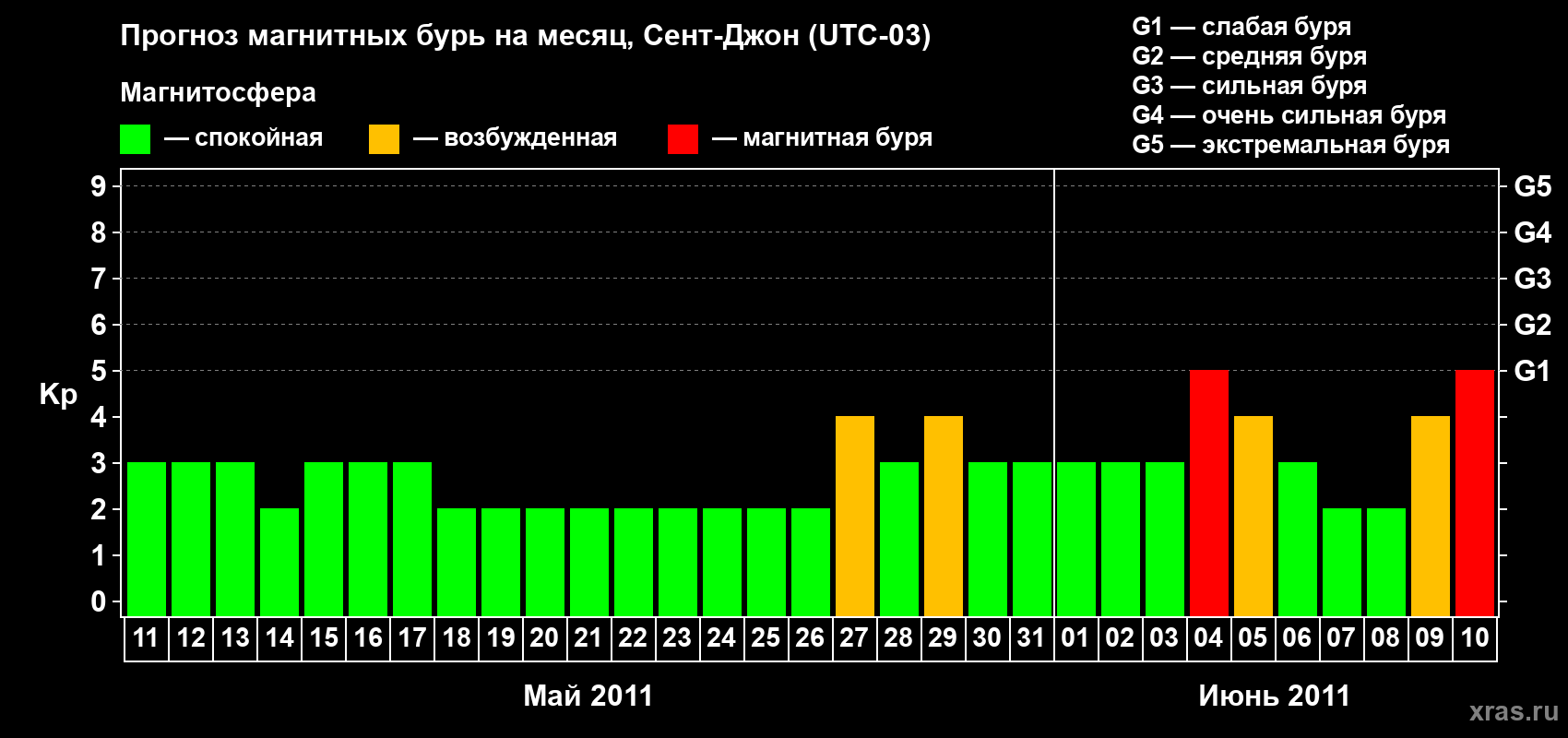 Прогноз магнитных бурь в Сент-Джоне — 11 мая 2011 года
