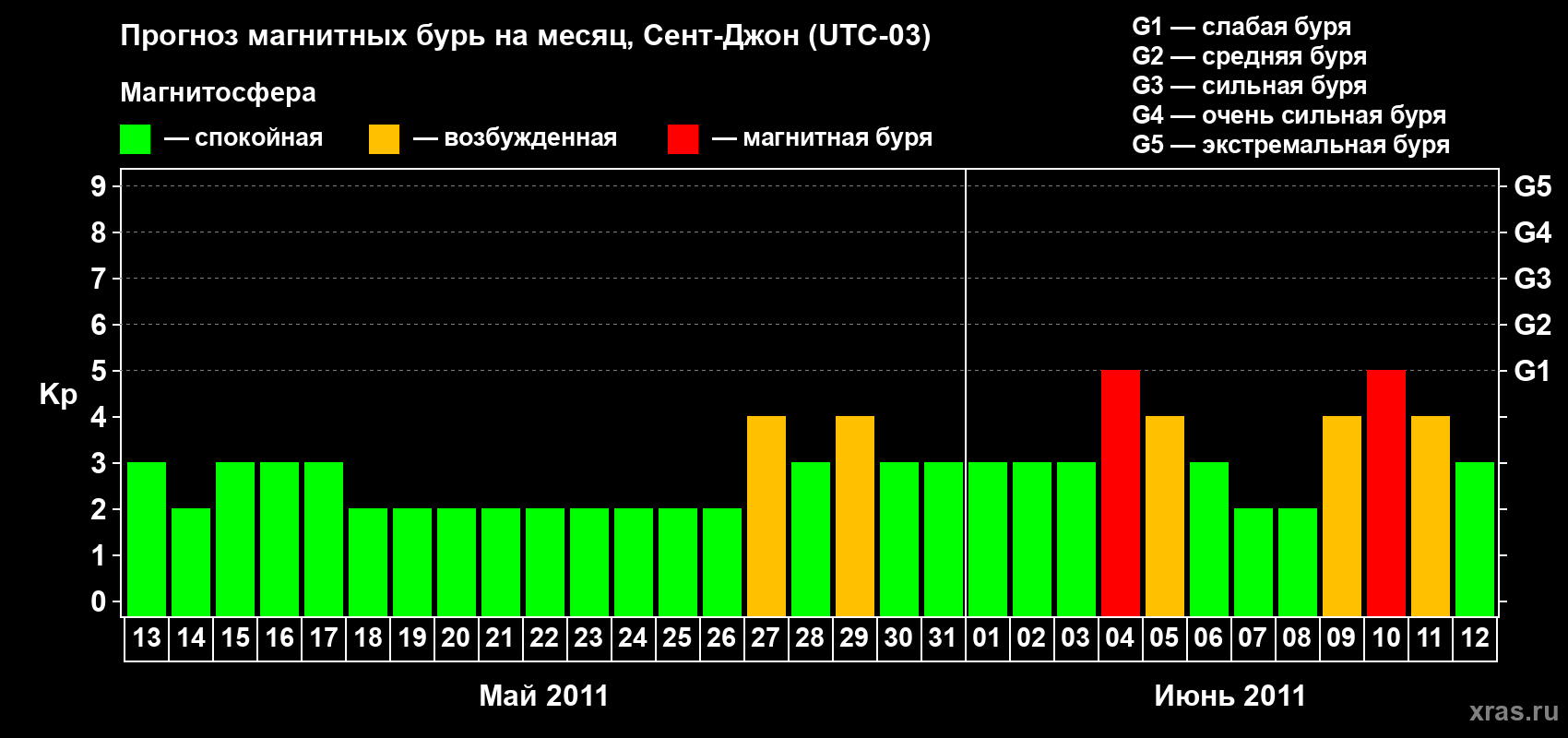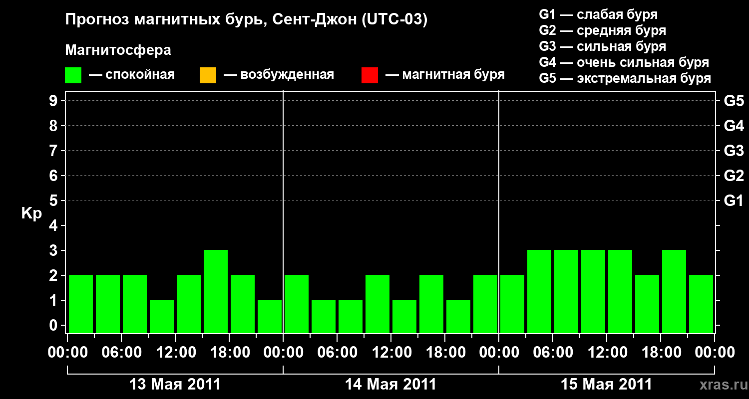 Прогноз магнитных бурь в Сент-Джоне — 13 мая 2011 года