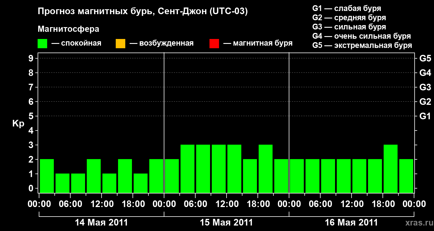 Прогноз магнитных бурь в Сент-Джоне на 14 мая 2011 года