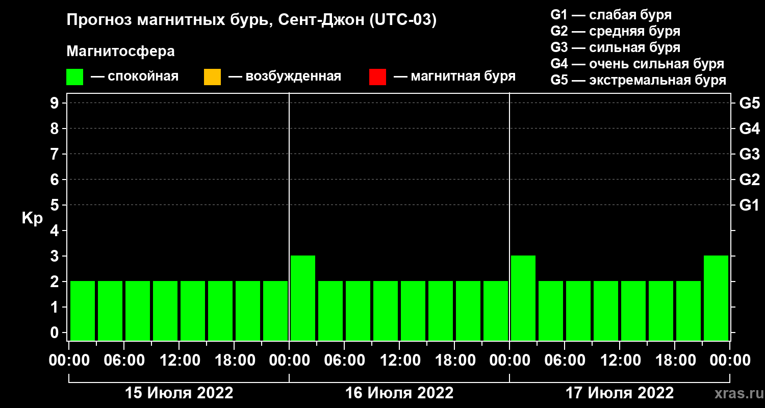Прогноз магнитных бурь в Сент-Джоне на 15 июля 2022 года