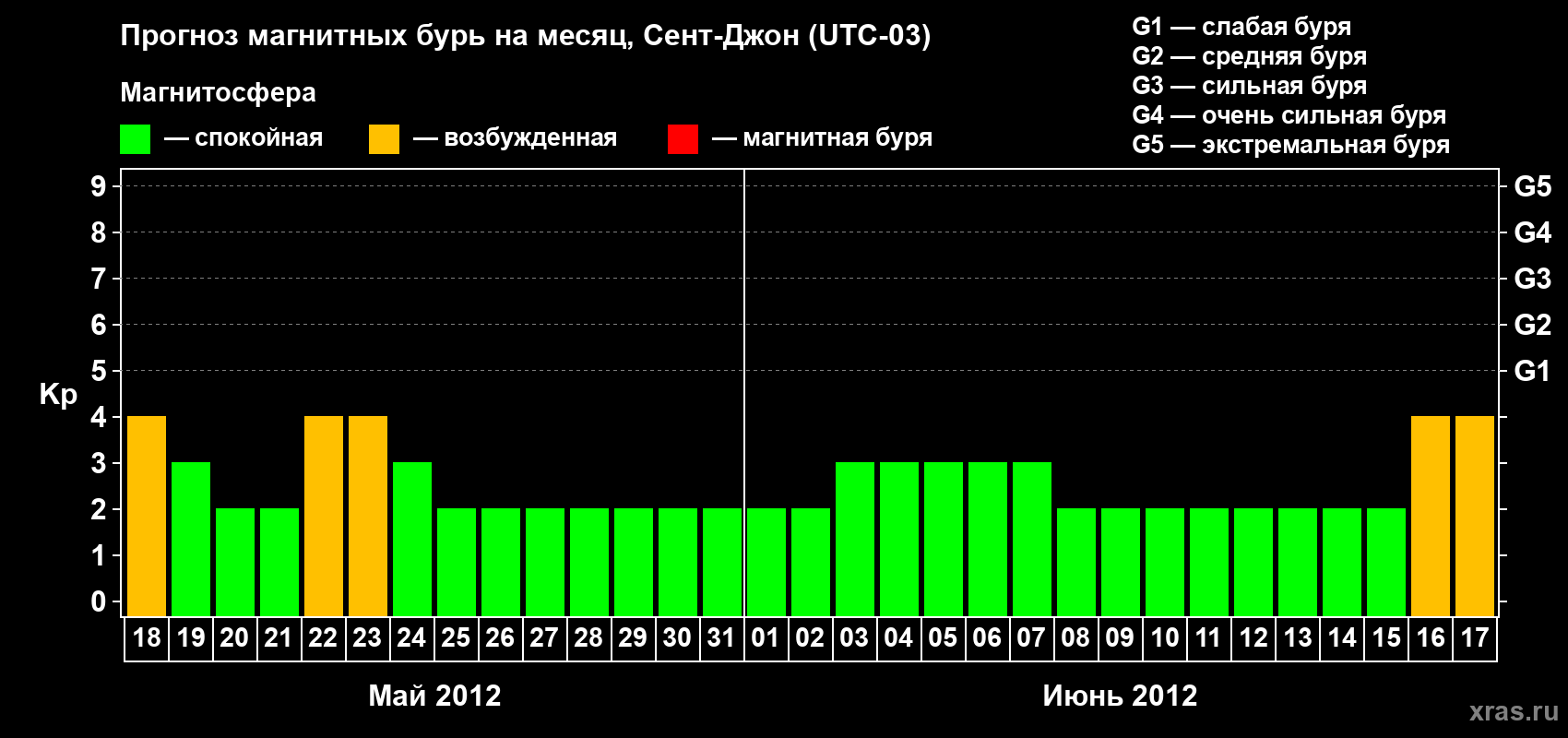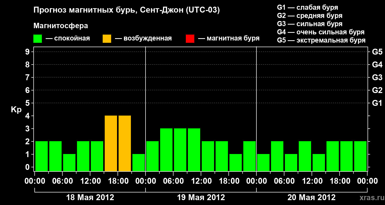 Прогноз магнитных бурь в Сент-Джоне — 18 мая 2012 года