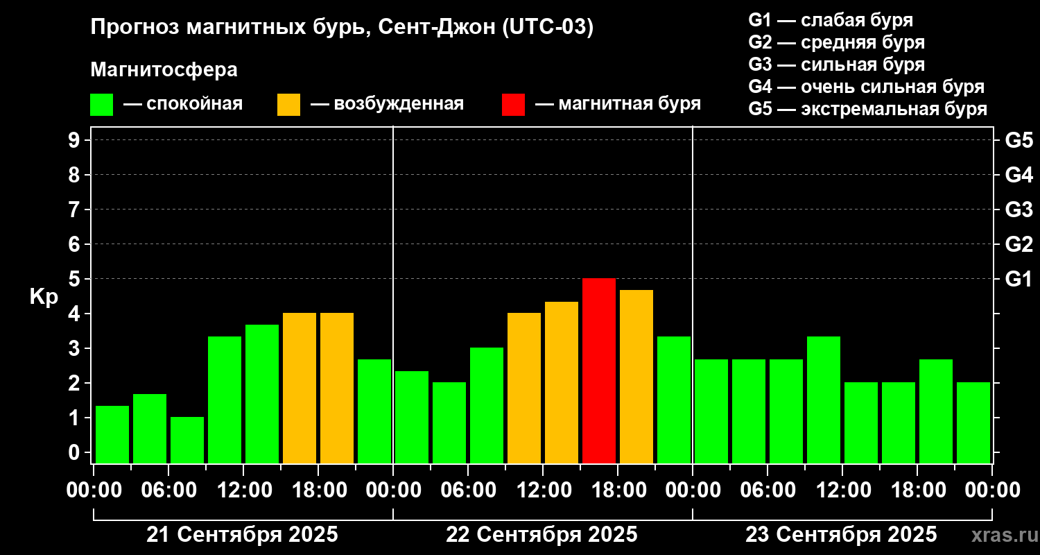 Прогноз магнитных бурь в Сент-Джоне на 21 сентября 2025 года