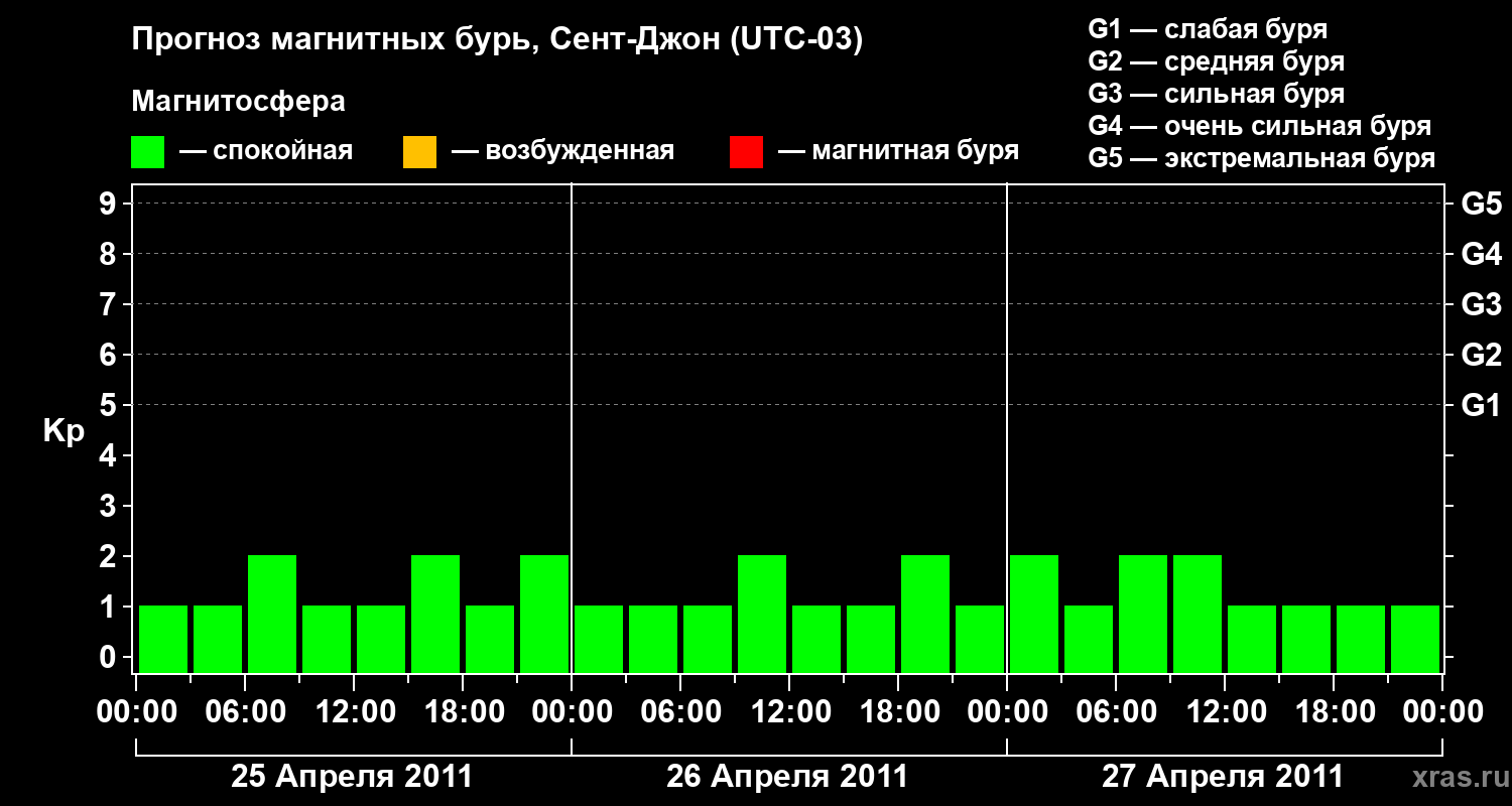 Прогноз магнитных бурь в Сент-Джоне на 25 апреля 2011 года