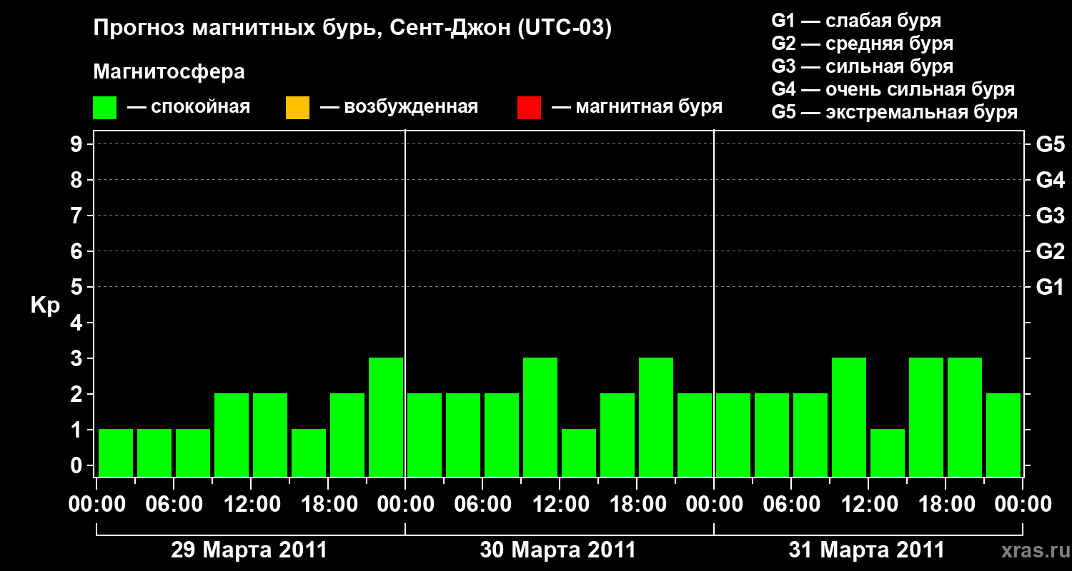 Прогноз магнитных бурь в Сент-Джоне — 29 марта 2011 года