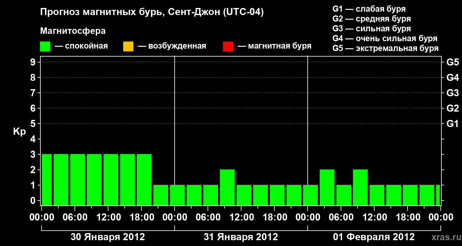 Прогноз магнитных бурь в Сент-Джоне на 30 января 2012 года
