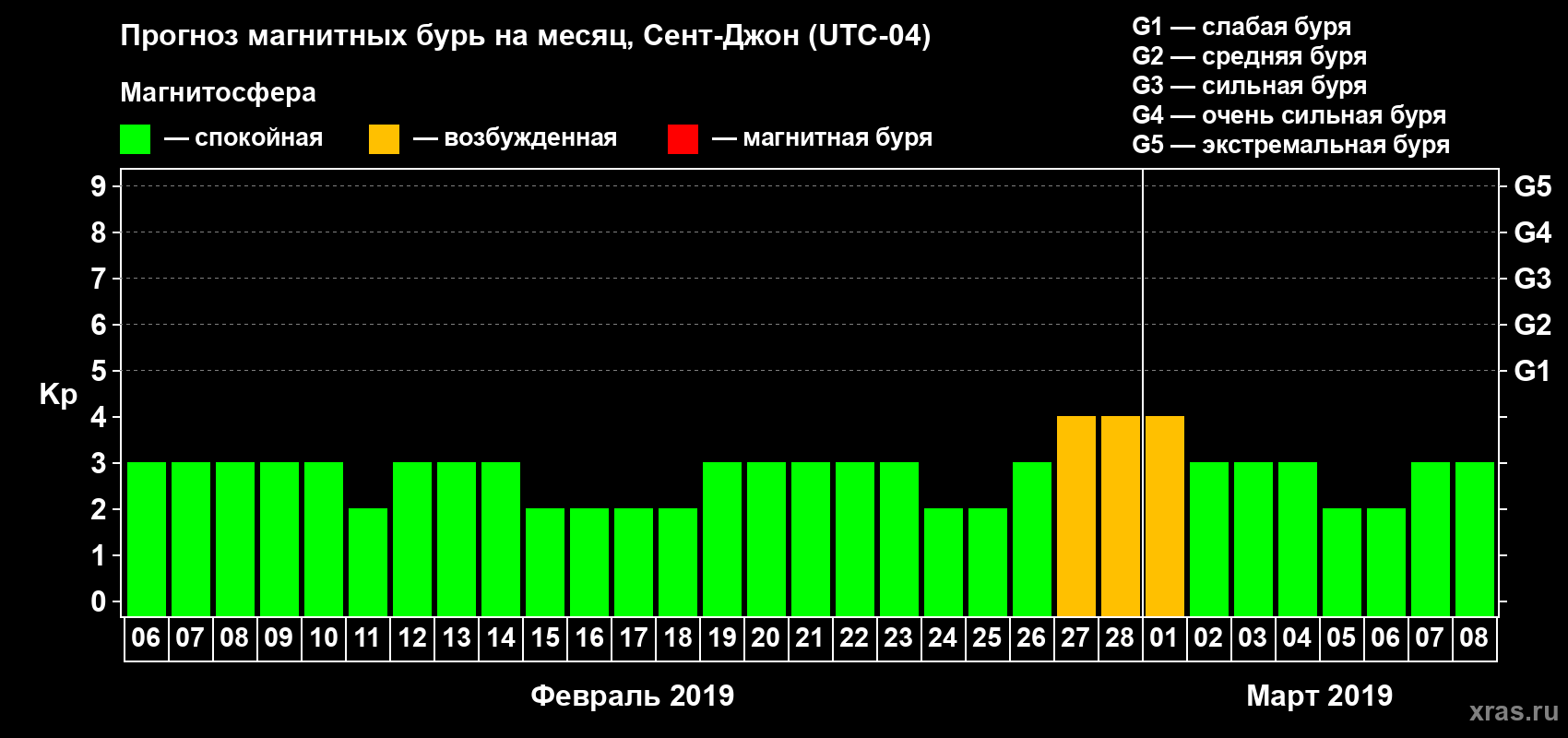 Прогноз магнитных бурь в Сент-Джоне — 6 февраля 2019 года