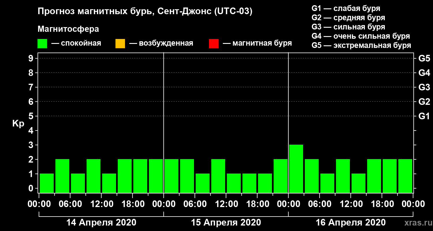 Прогноз магнитных бурь в Сент-Джонсе на 14 апреля 2020 года