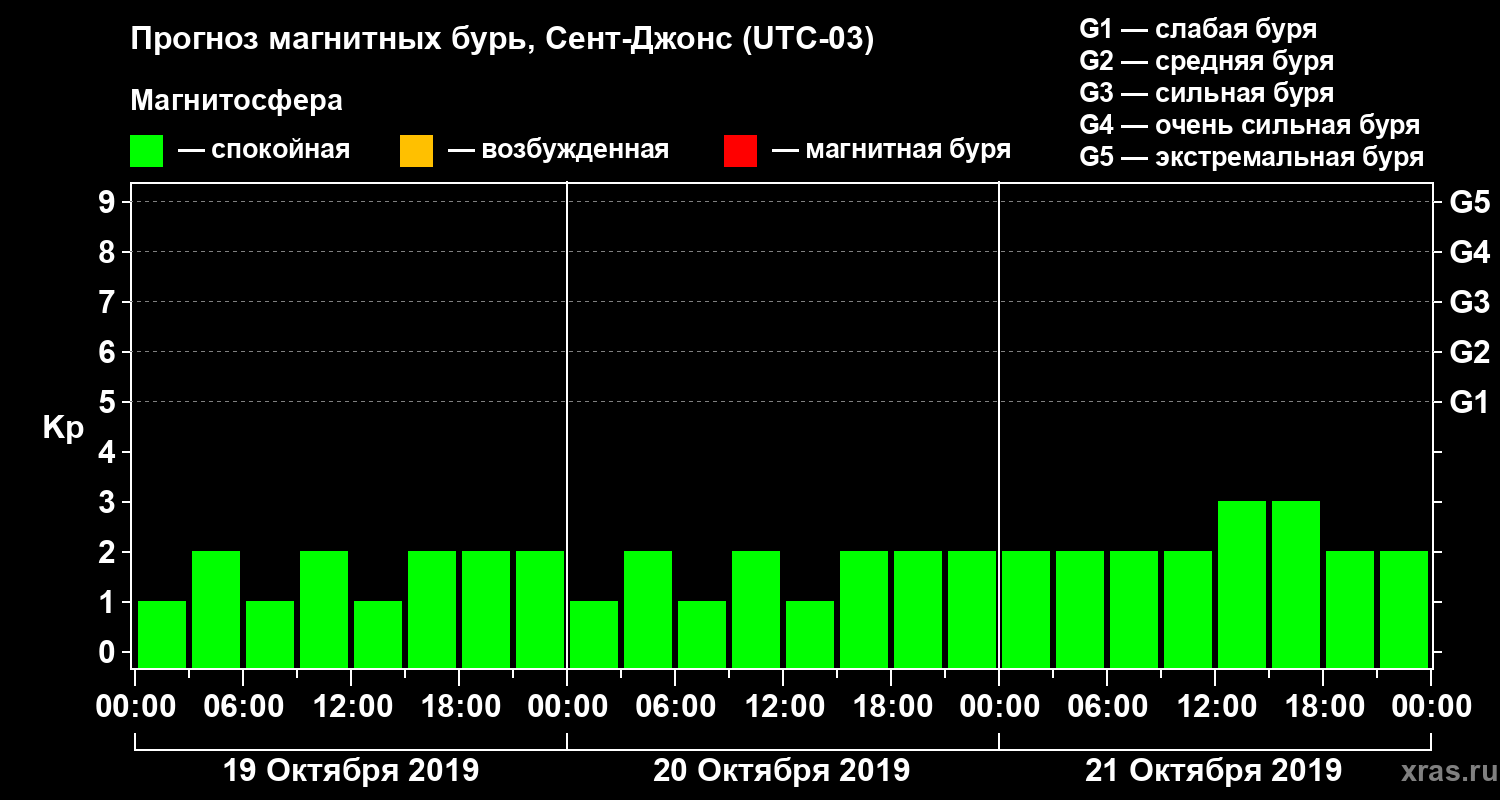 Прогноз магнитных бурь в Сент-Джонсе — 19 октября 2019 года