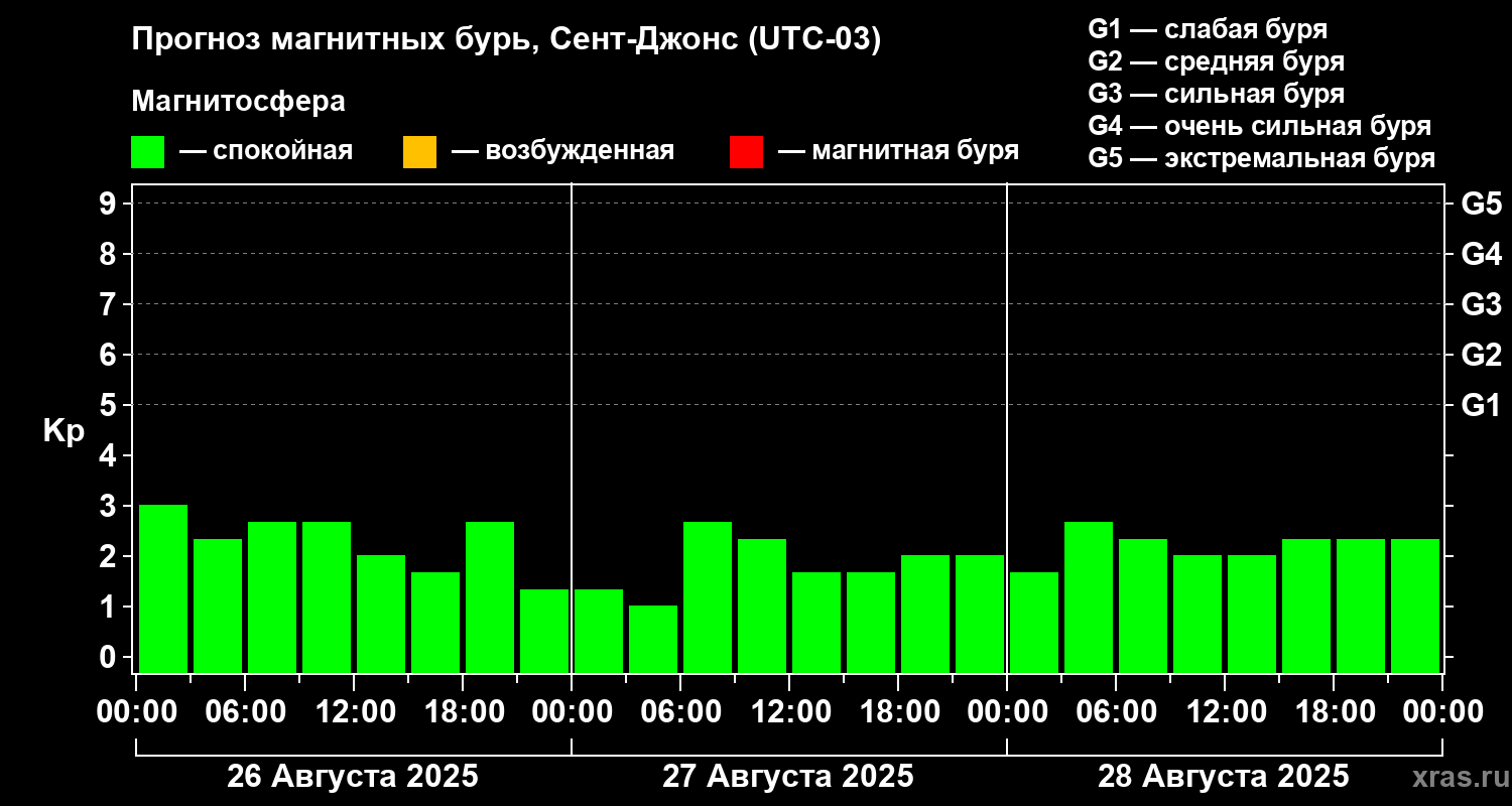 Прогноз магнитных бурь в Сент-Джонсе на 26 августа 2025 года