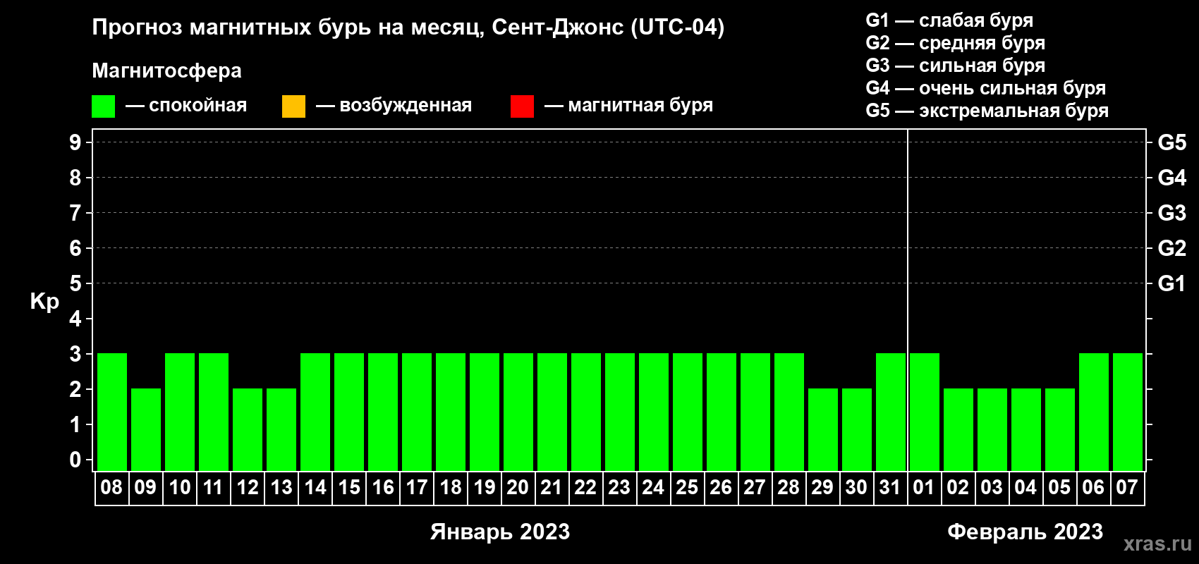 Прогноз магнитных бурь в Сент-Джонсе на 8 января 2023 года