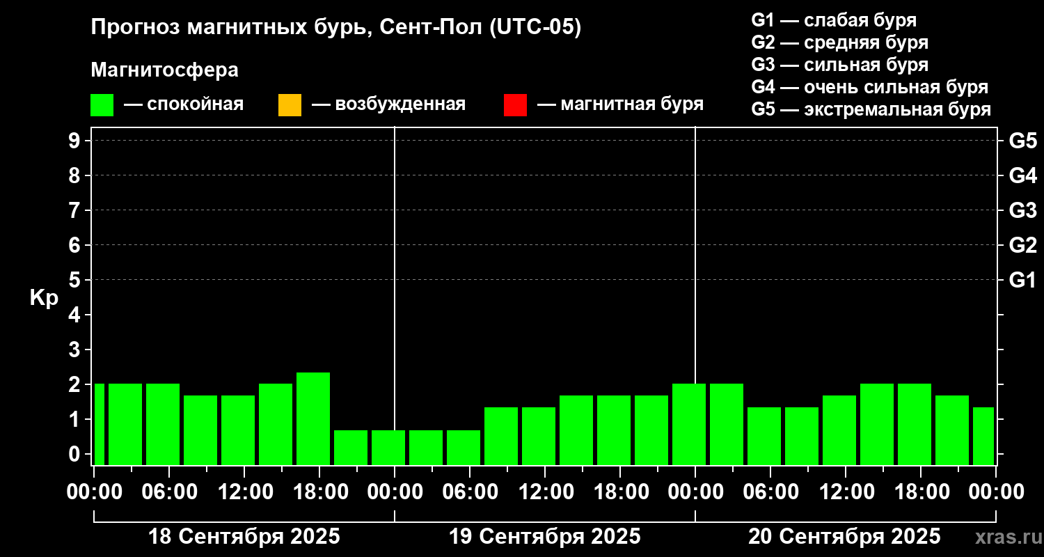 Прогноз магнитных бурь в Сент-Поле — 18 сентября 2025 года