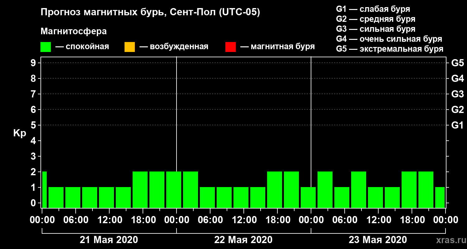 Прогноз магнитных бурь в Сент-Поле — 21 мая 2020 года